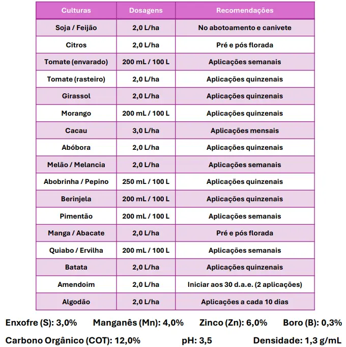 Promove floradas mais abundantes e uniformes, melhor formação de frutos e flores, aumento da qualidade nutricional e visual da produção, além de maior produtividade e rentabilidade por área, com manejo mais equilibrado e sustentável.